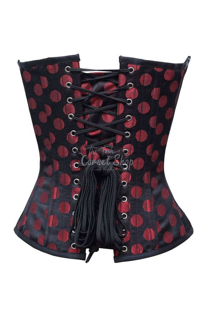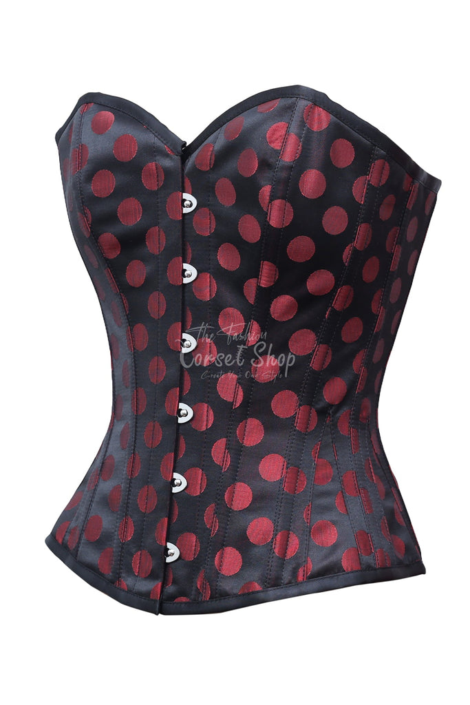 Taro Red Dot On Black Satin Overbust Corset