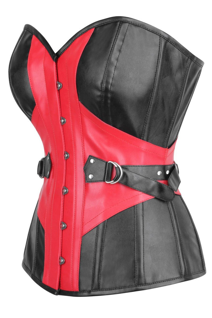 Bertrand Black & Red Faux Leather Corset With Buckle Details