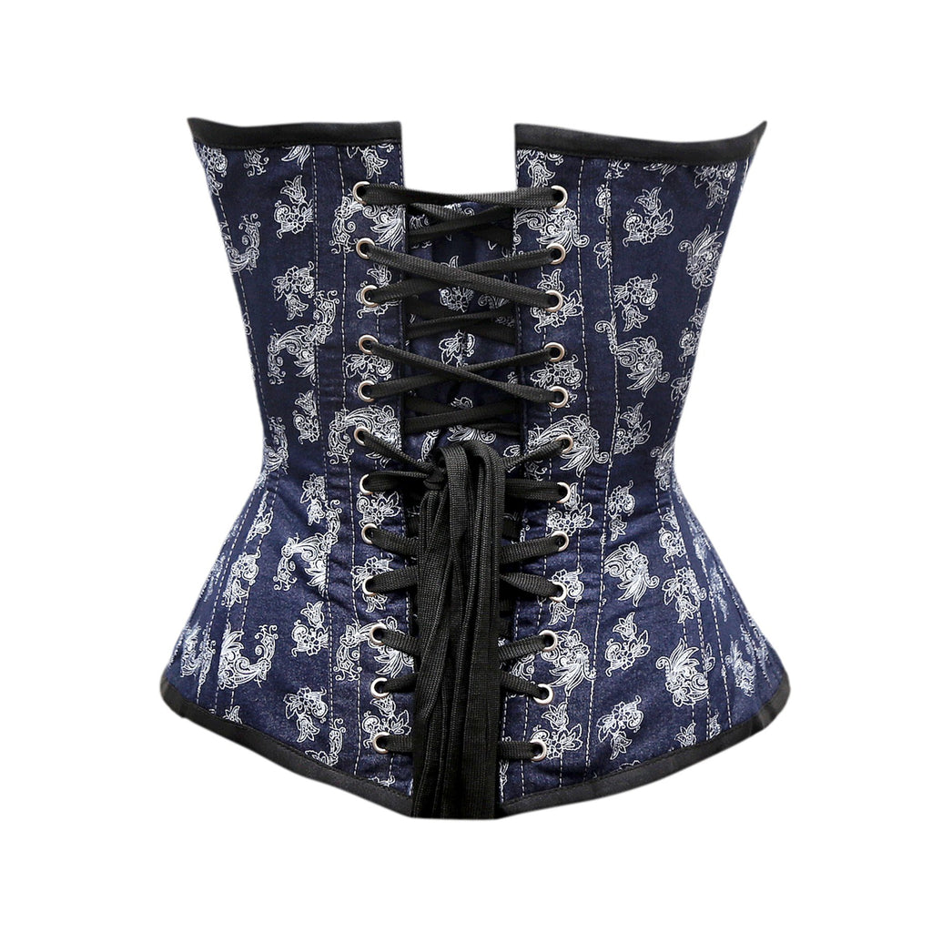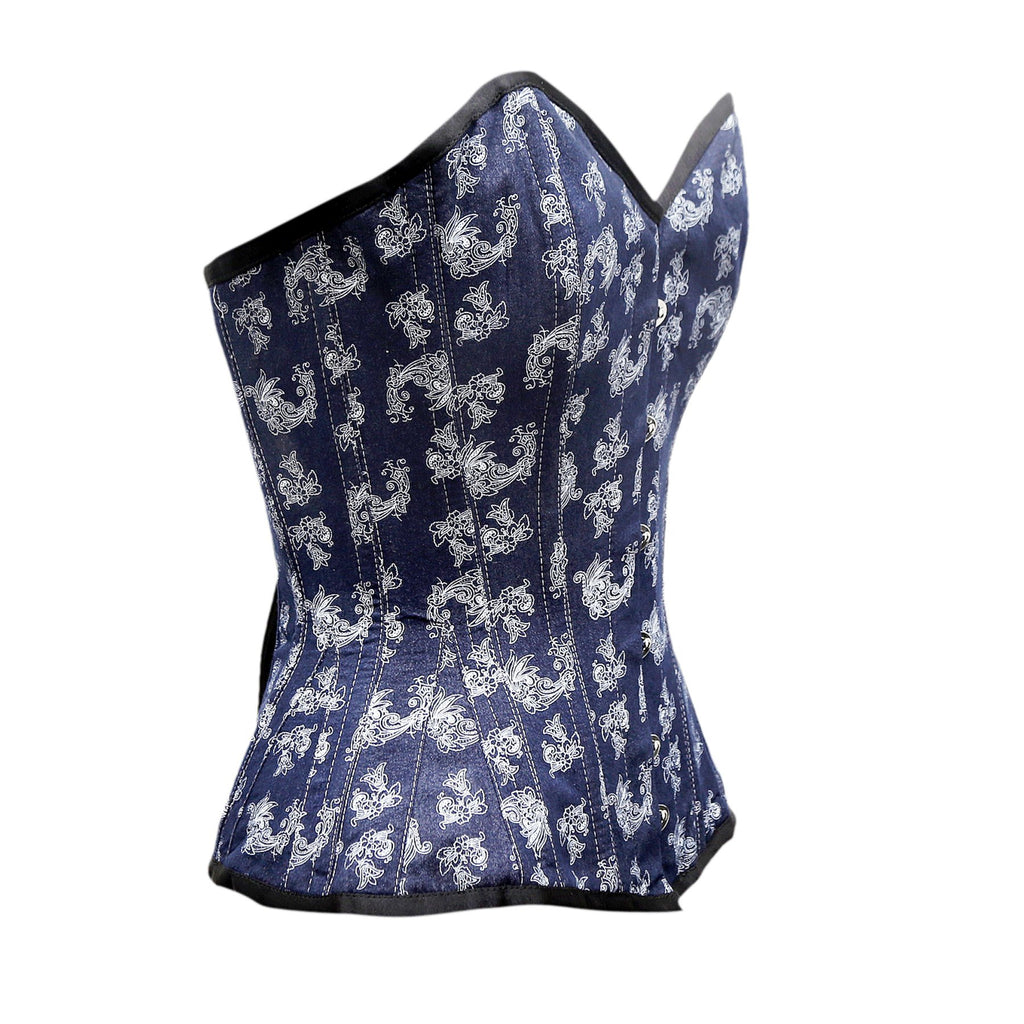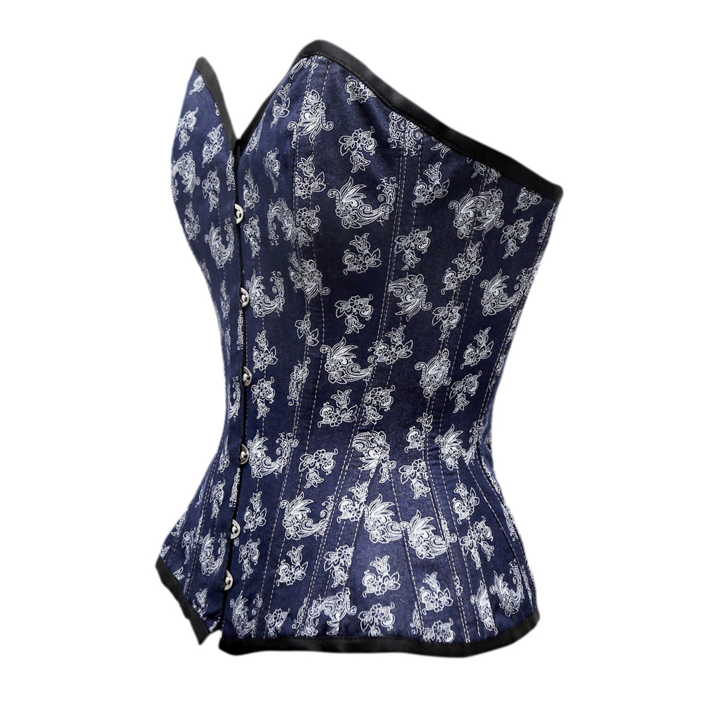 Baier Steel Boned Overbust Corset In Floral Print In Denim