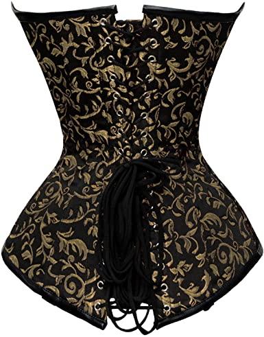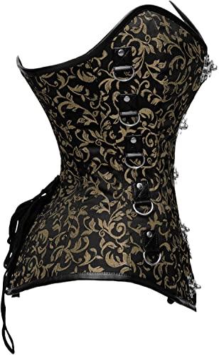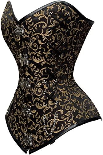 Aneta Black Gold Brocade Steel Boned Overbust Corset