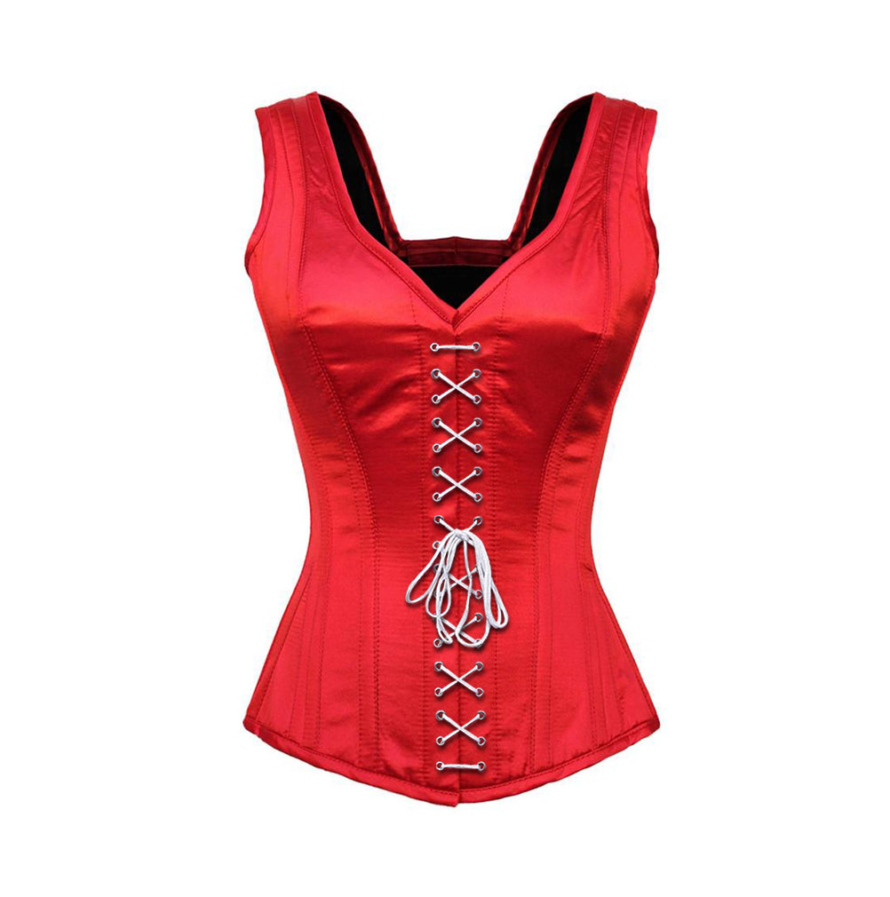 Aprik Red Satin Shoulder Straps Overbust Corset