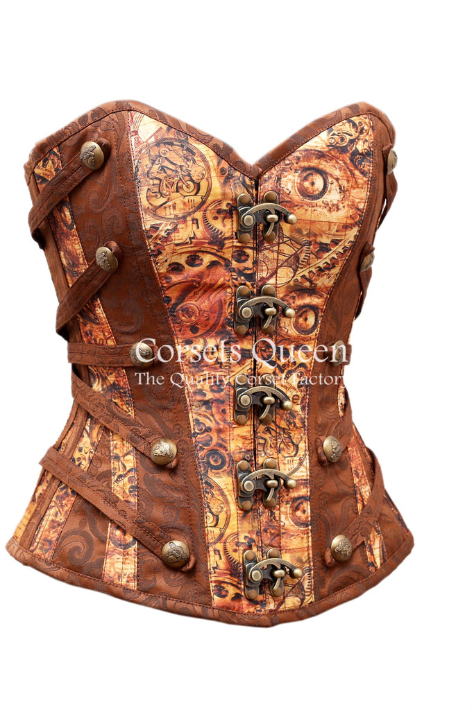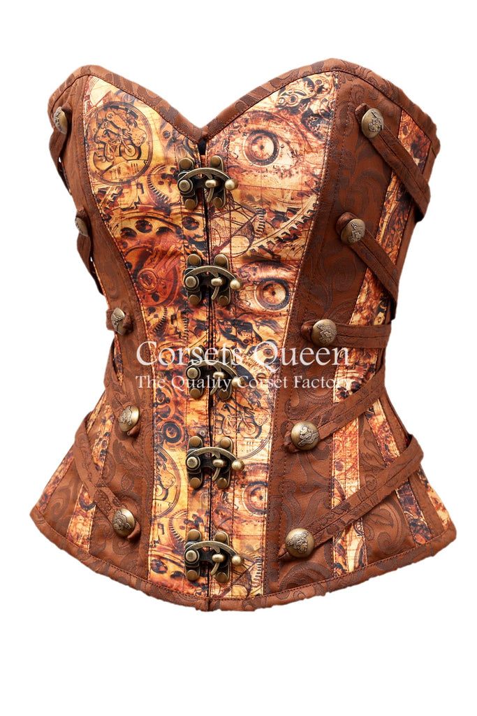 Squibb Digital Print With Brown Brocade Overbust Corset