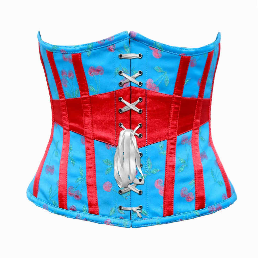 Djkovic Turquoise Brocade Cherry Weaving Underbust Corset