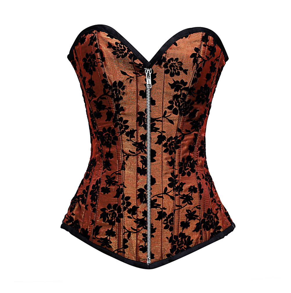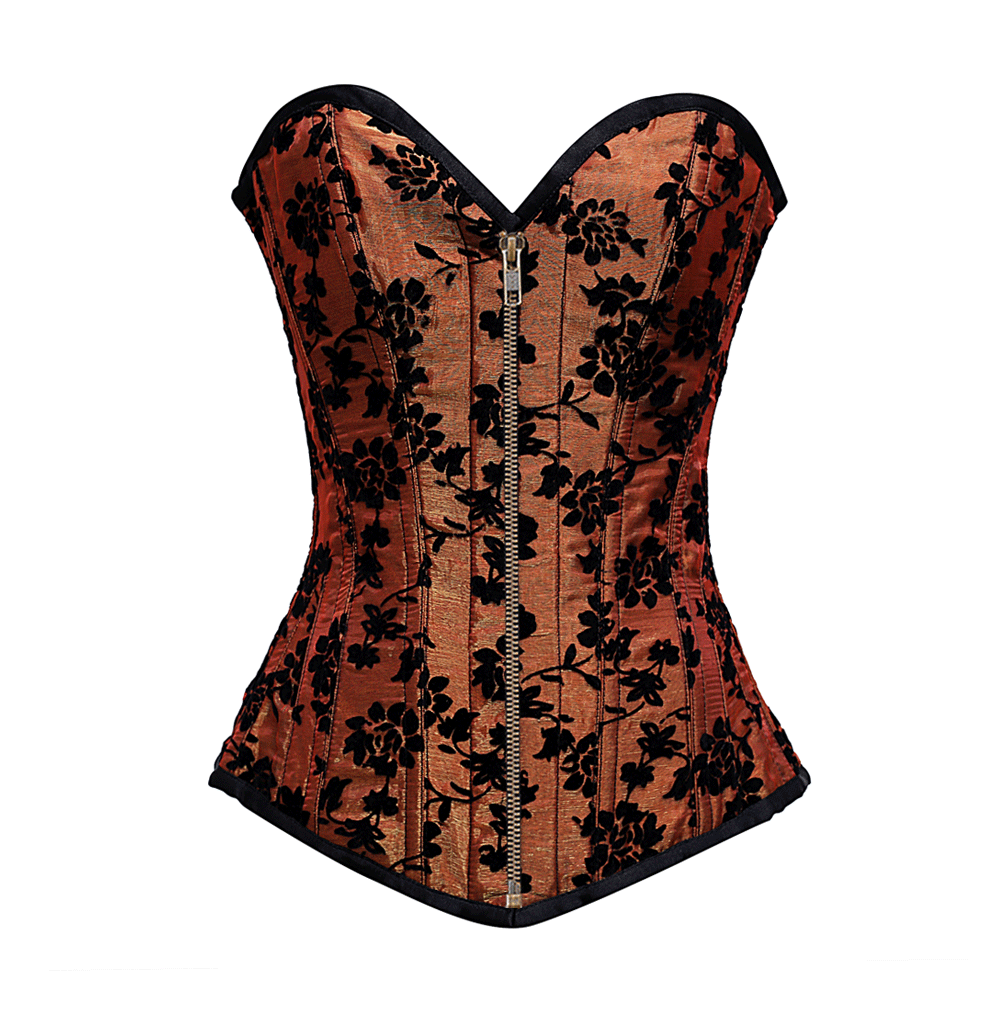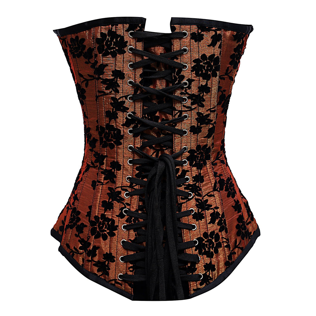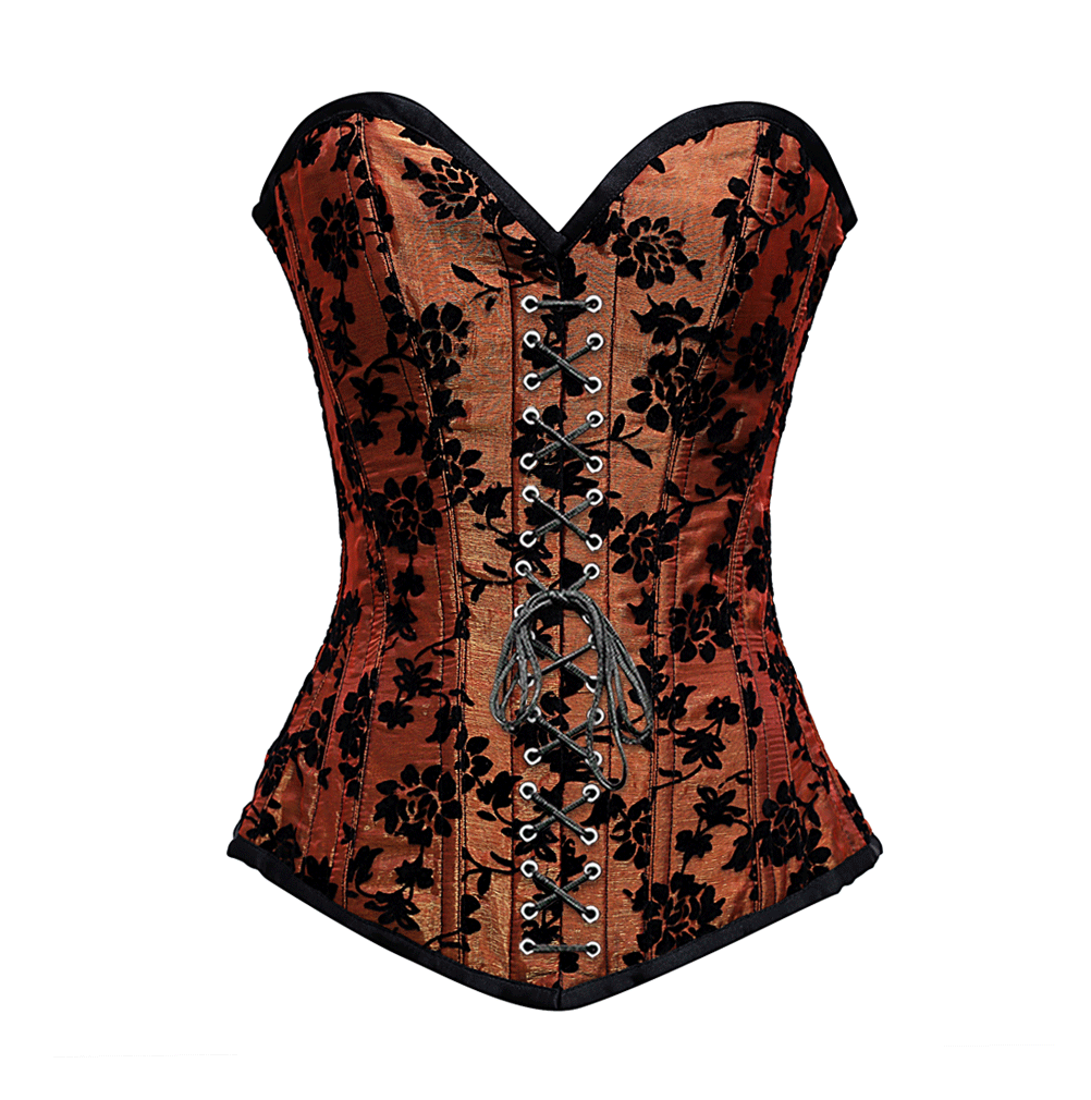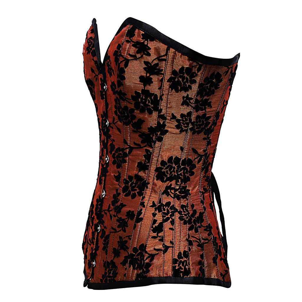 Merritt Burgundy Longline Corset In Tissue Flocking