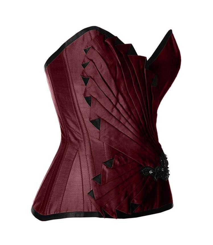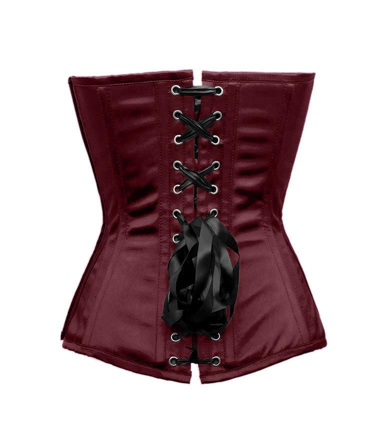 • Burgundy Satin/Taffeta Embroidered Overbust Corset
