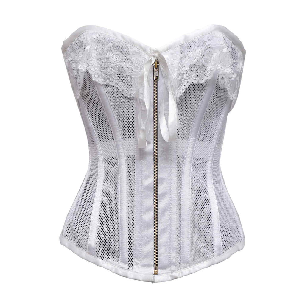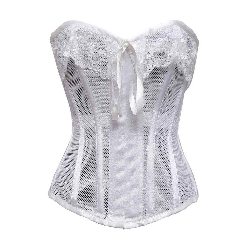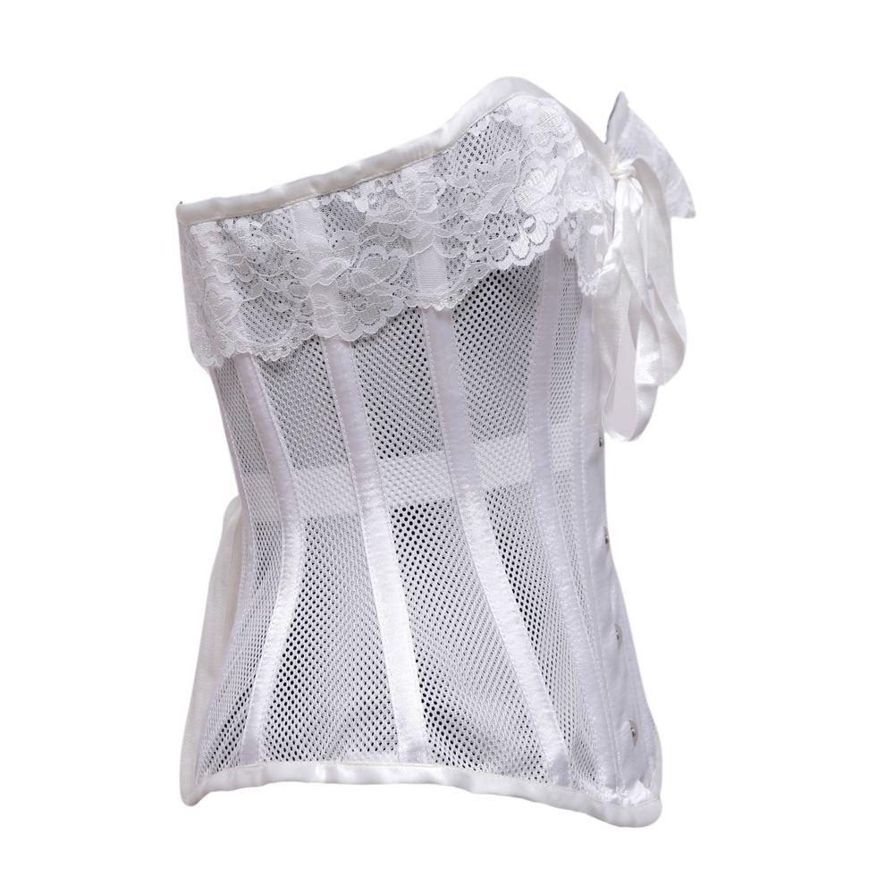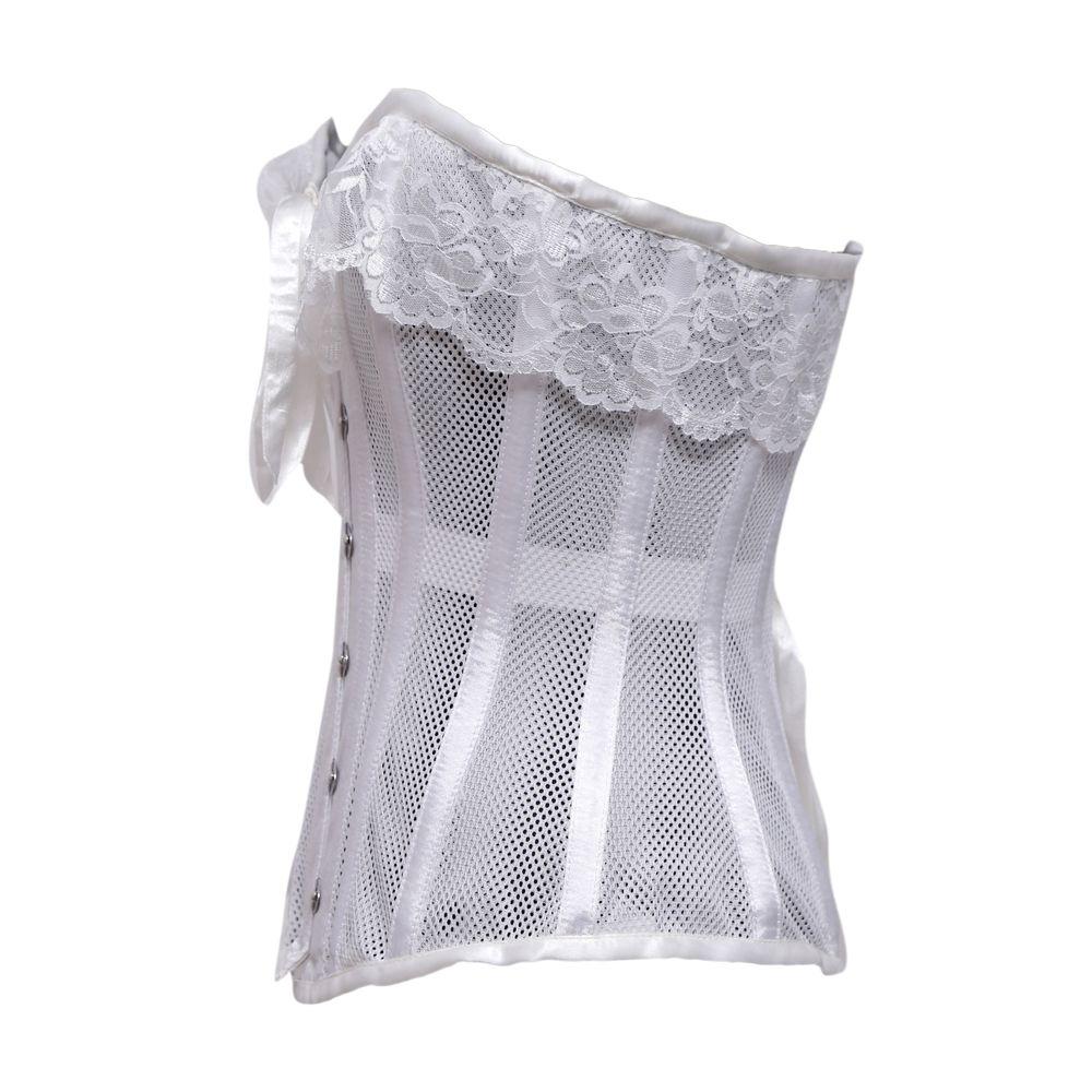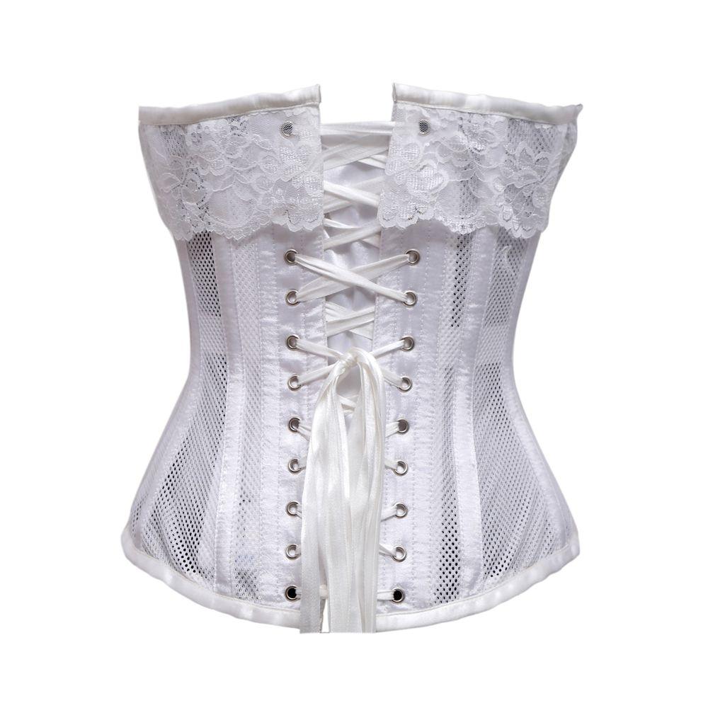 • White Mesh & White Satin Lace Steel Boned Overbust Corset