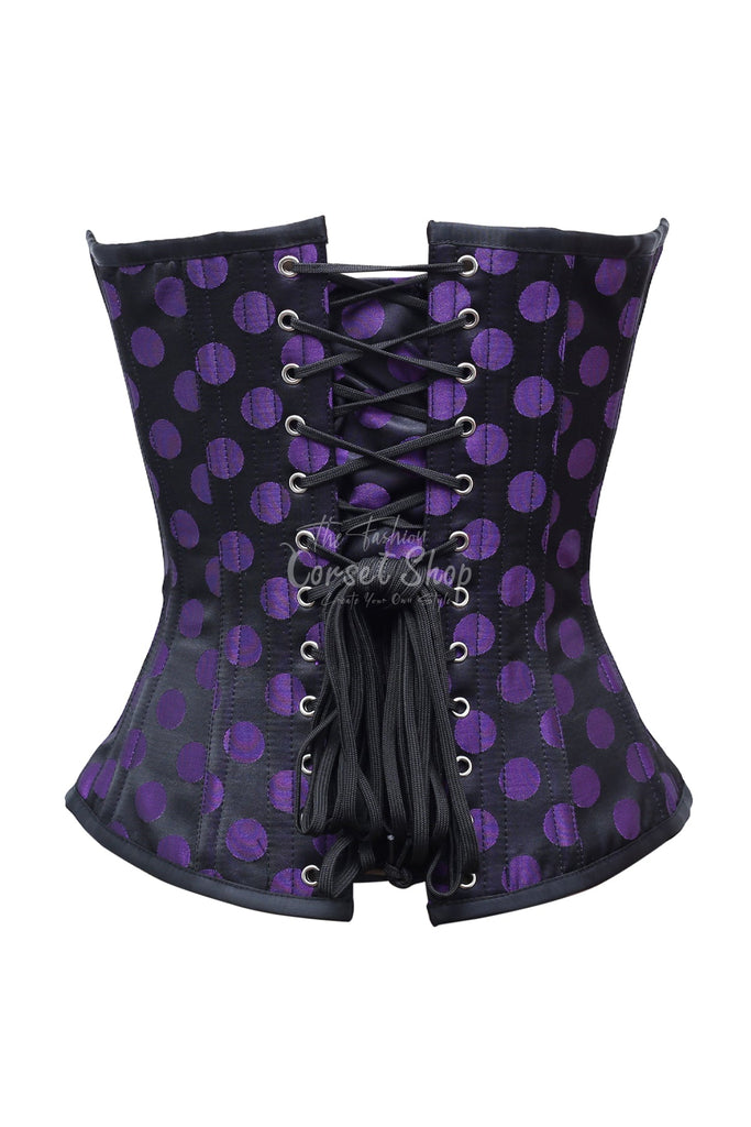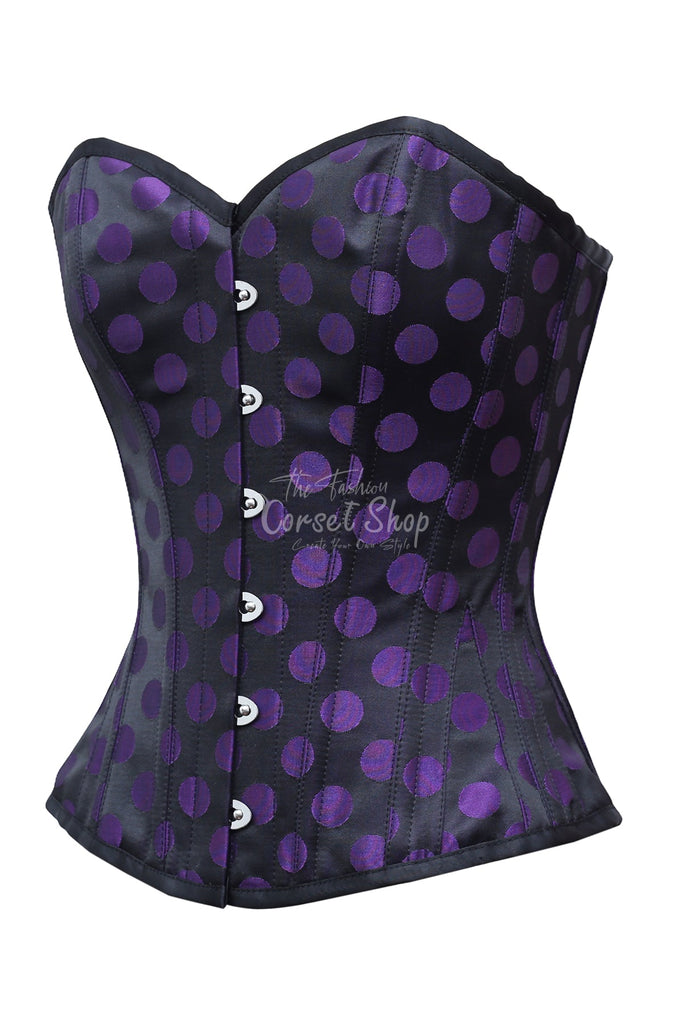 Anri Purple Dot On Black Satin Overbust Corset