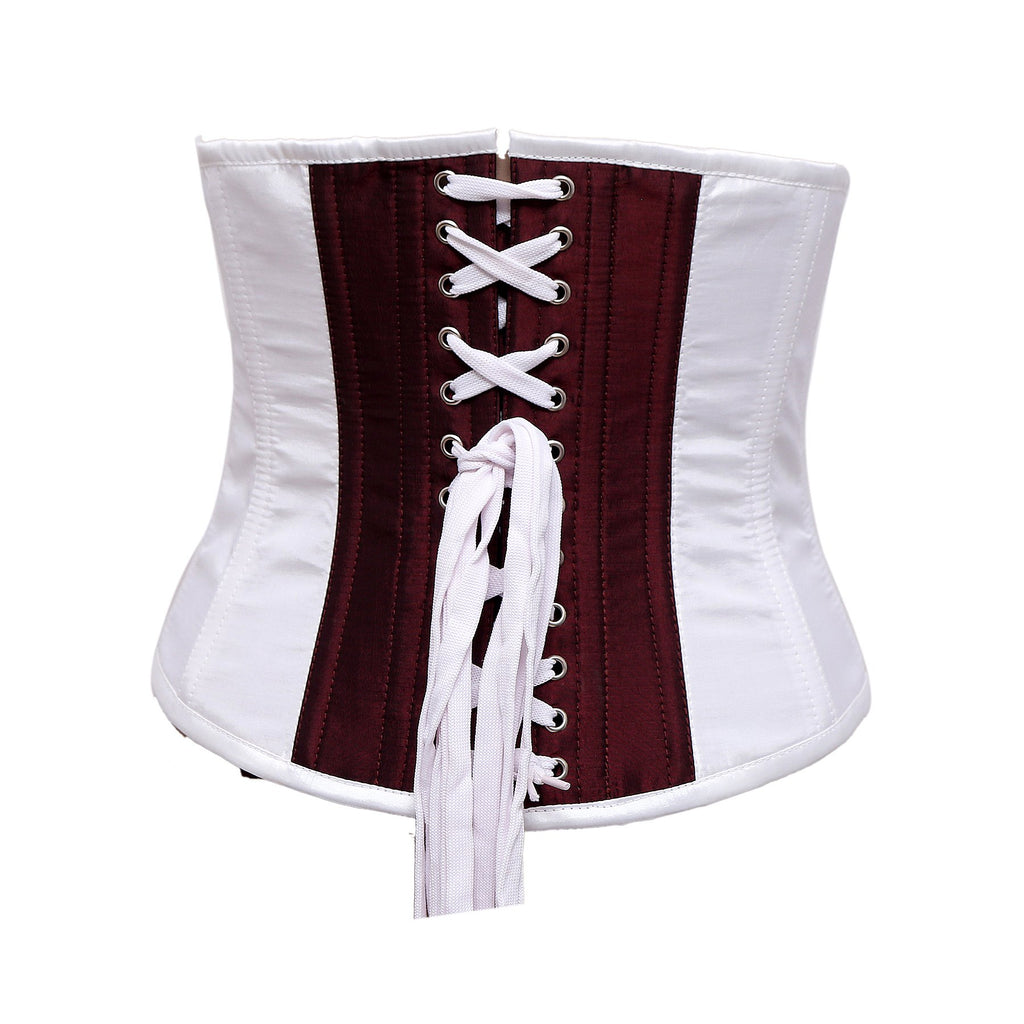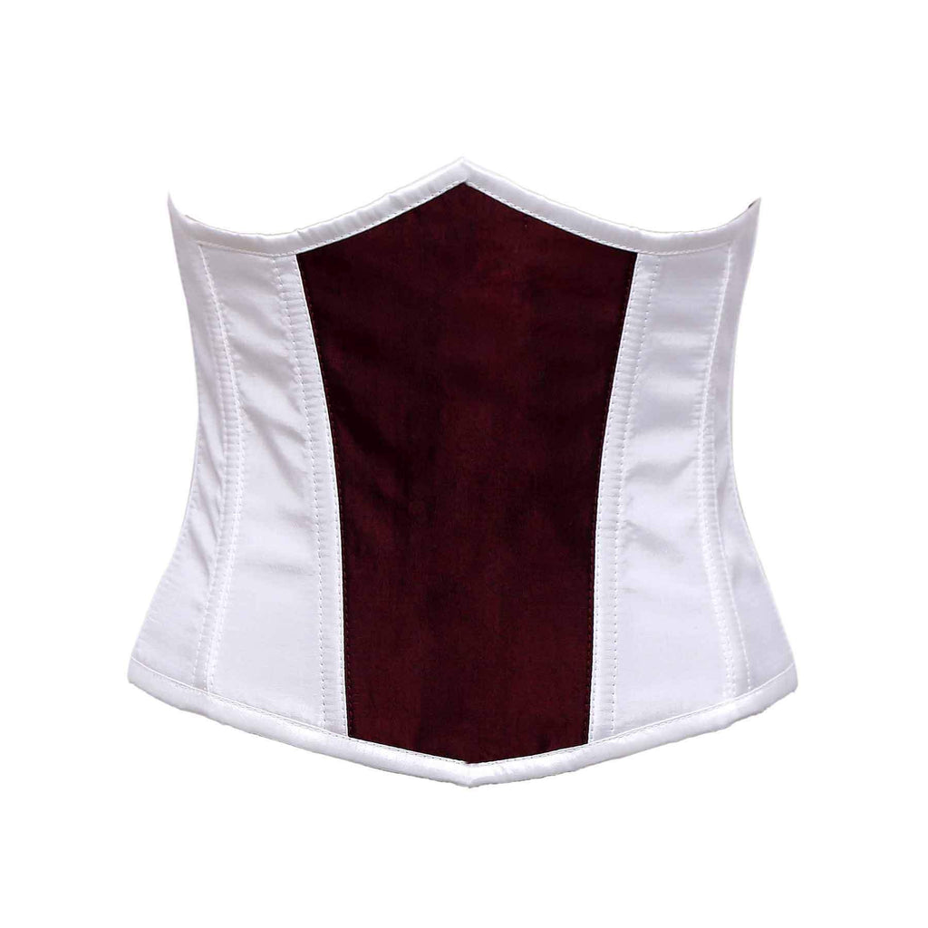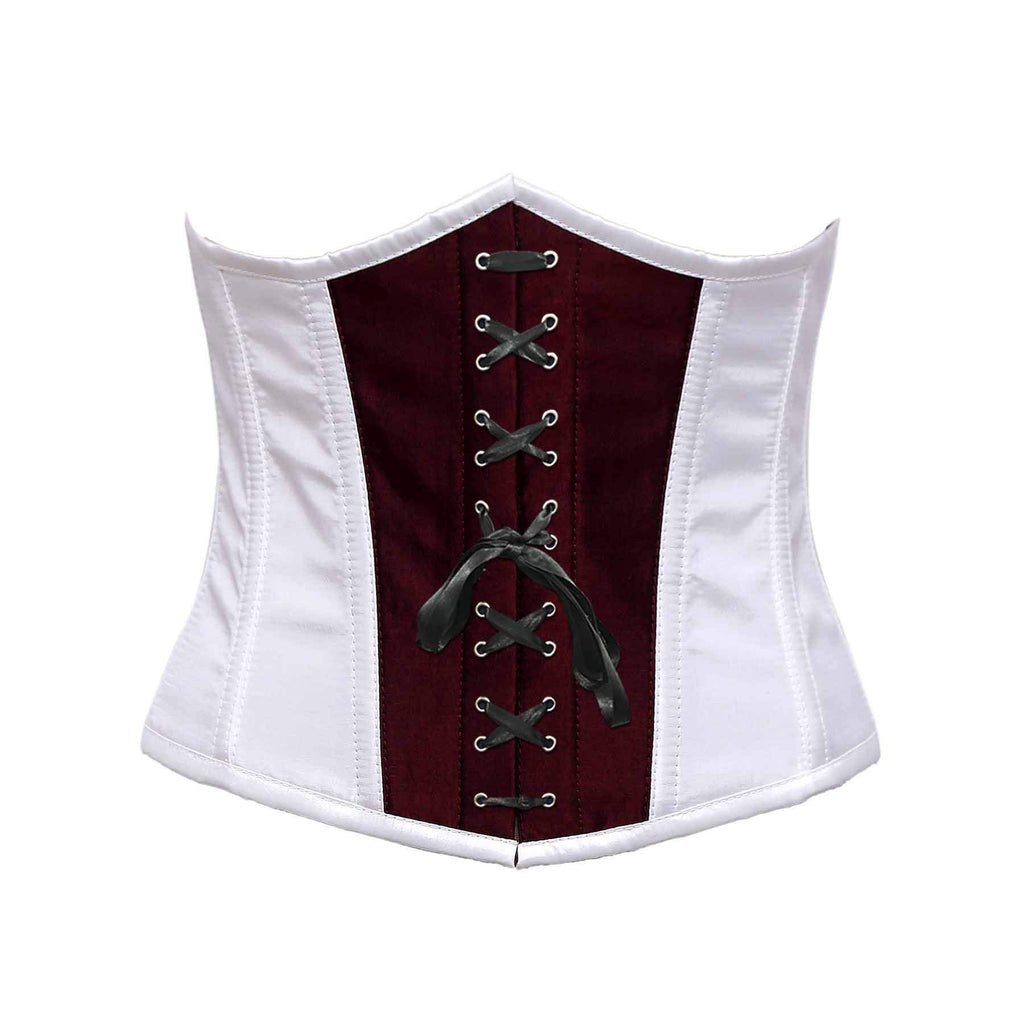 John White & Burgundy Taffeta Steel Boned Underbust Corset