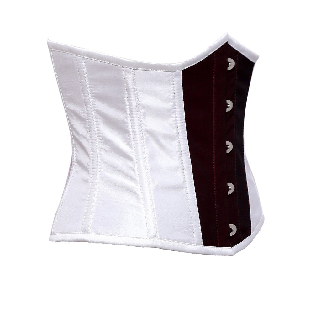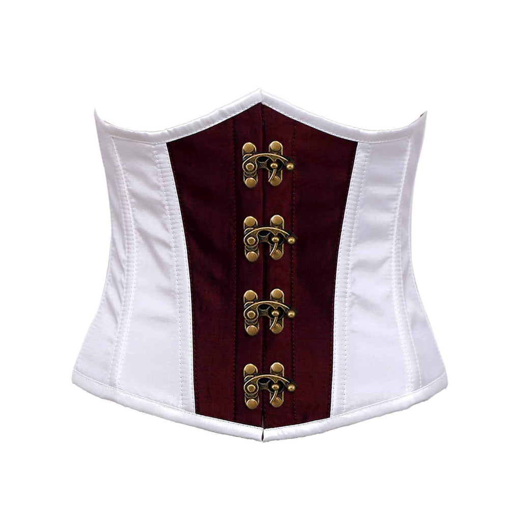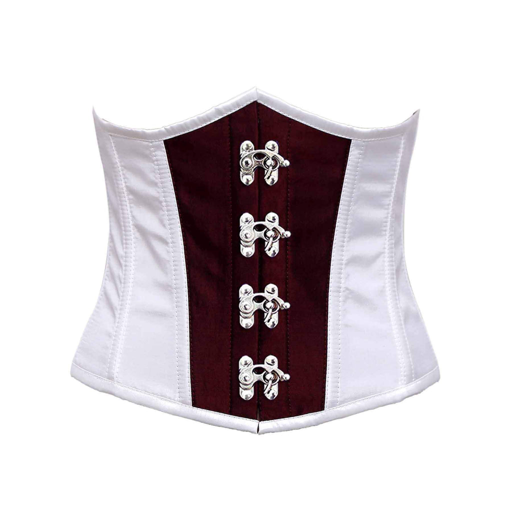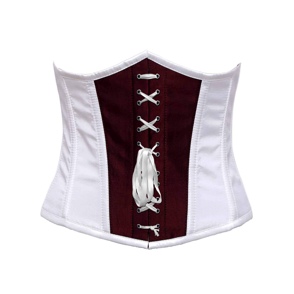 John White & Burgundy Taffeta Steel Boned Underbust Corset