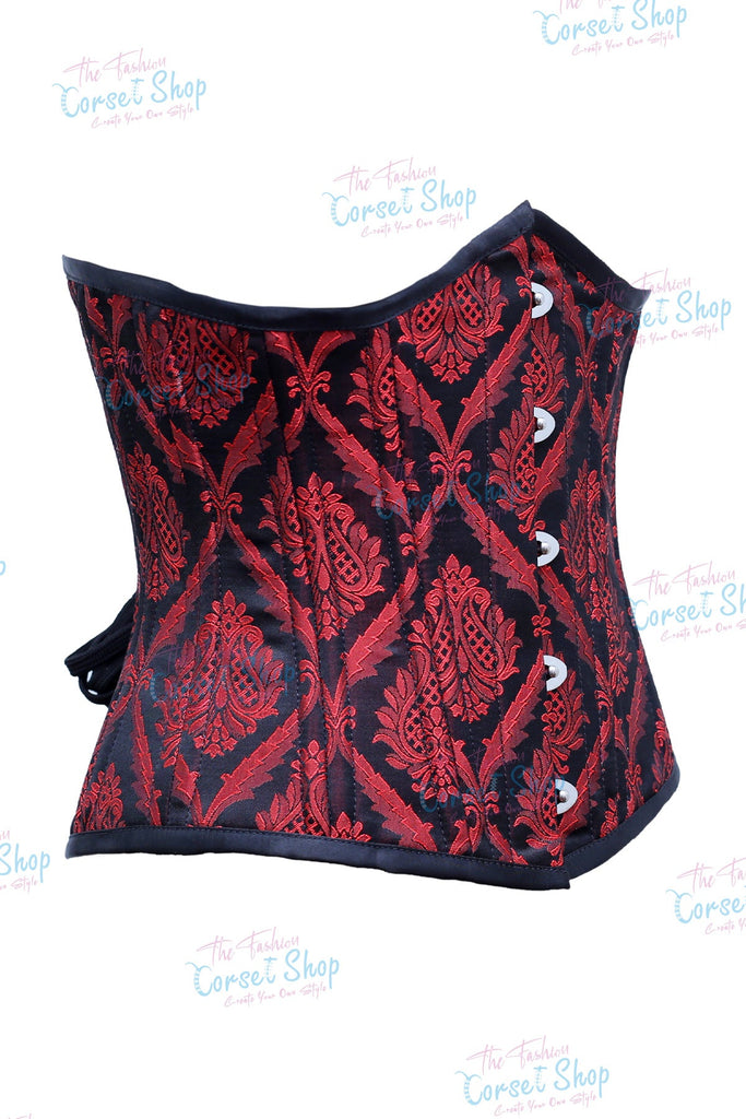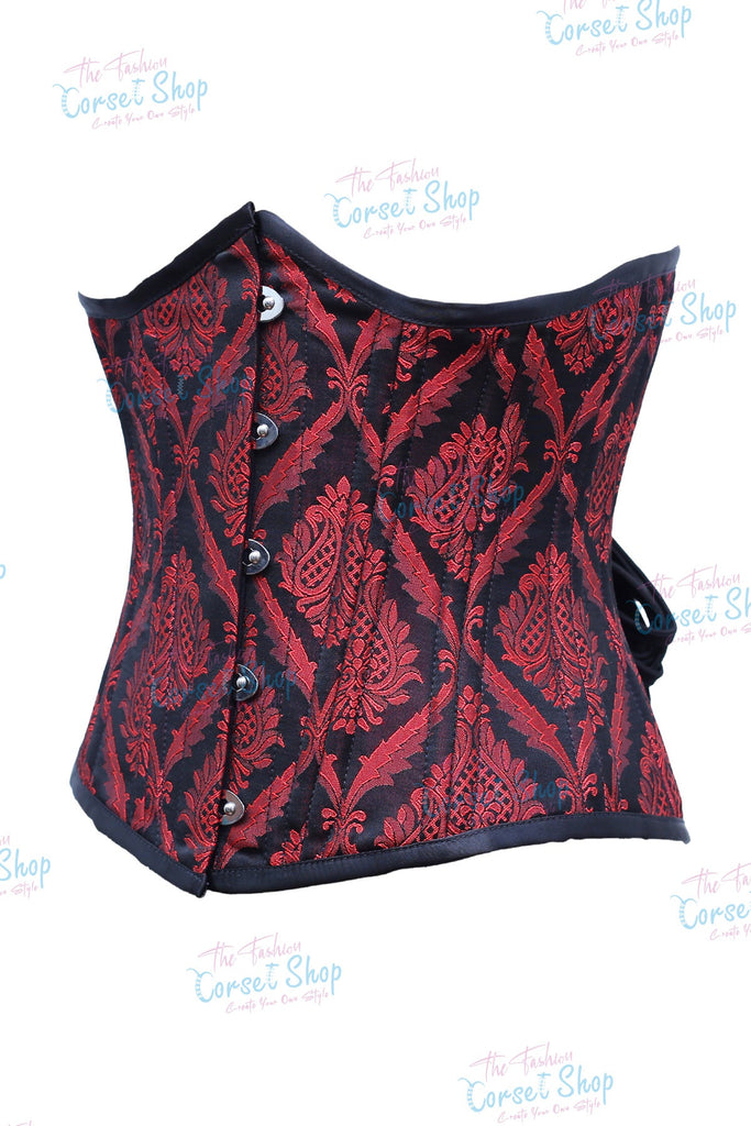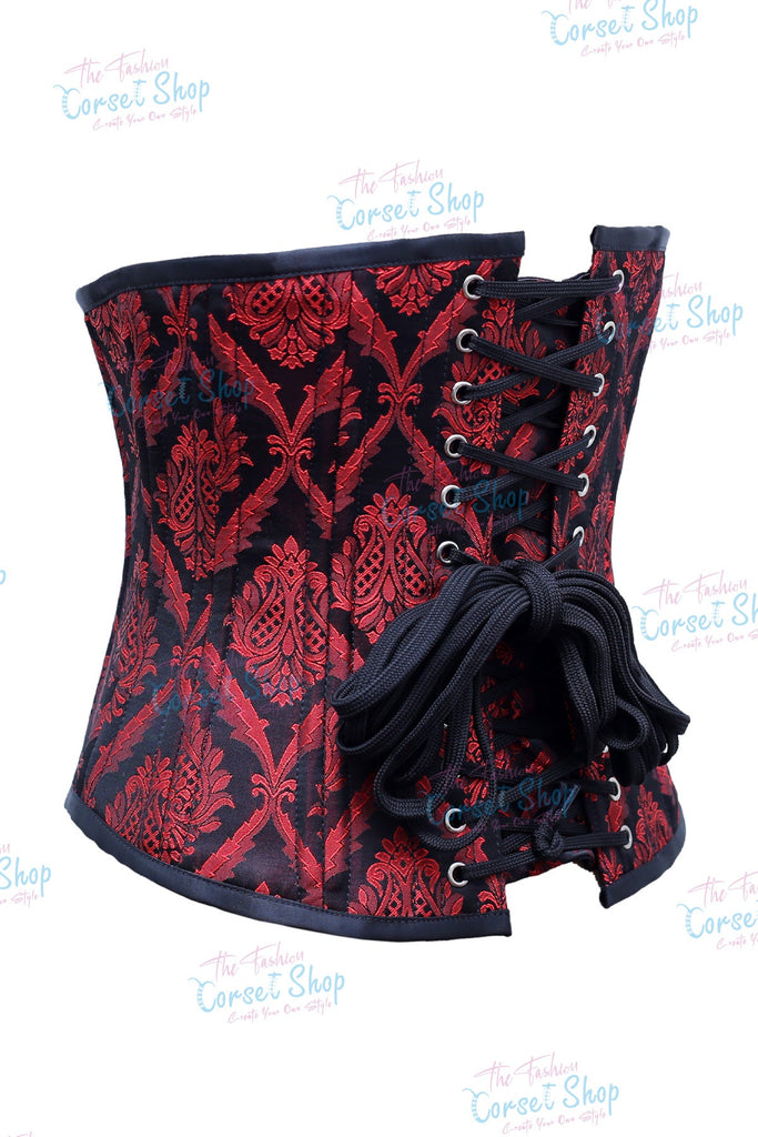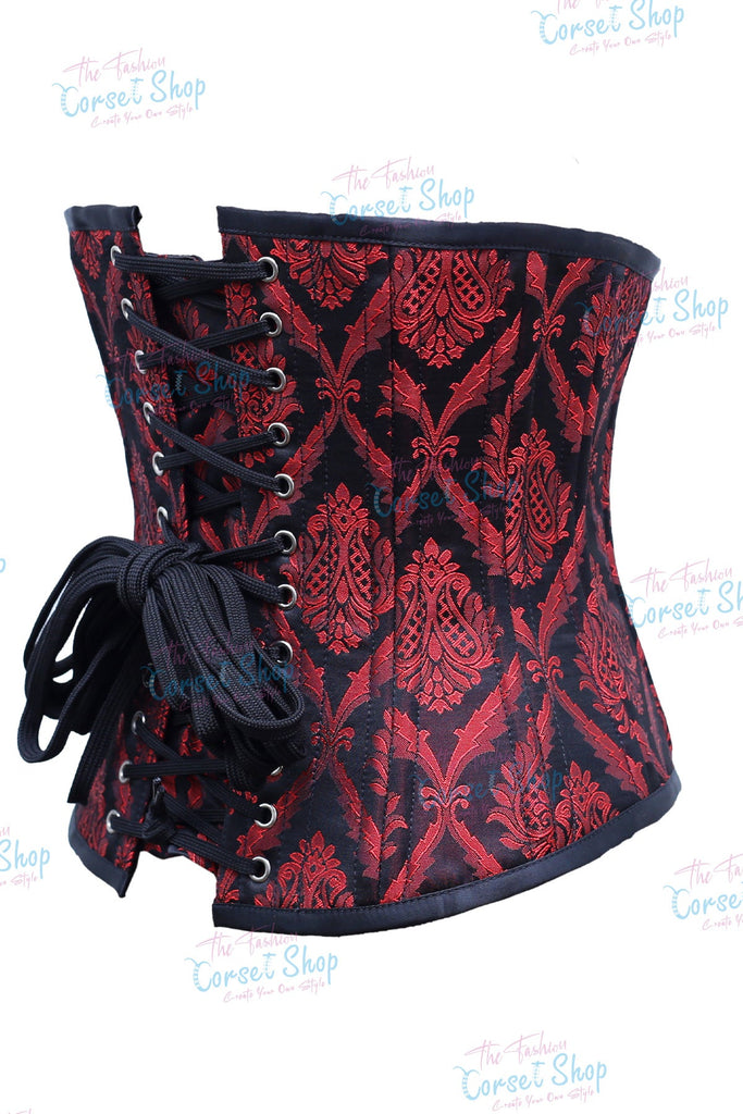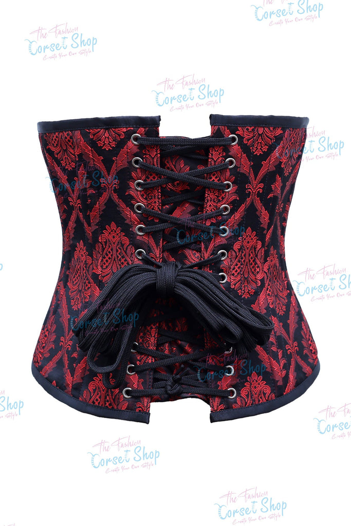 Fenna Red Black Floral Brocade Waist Training Corset