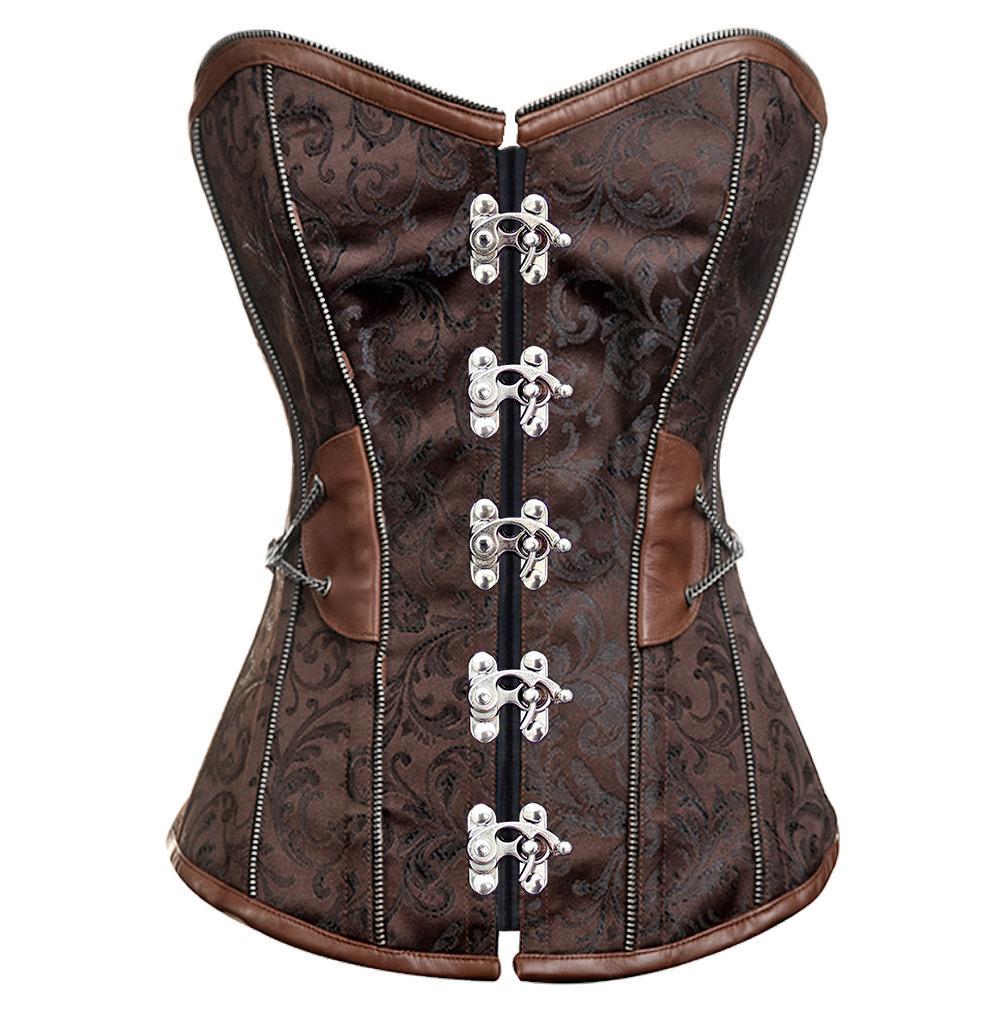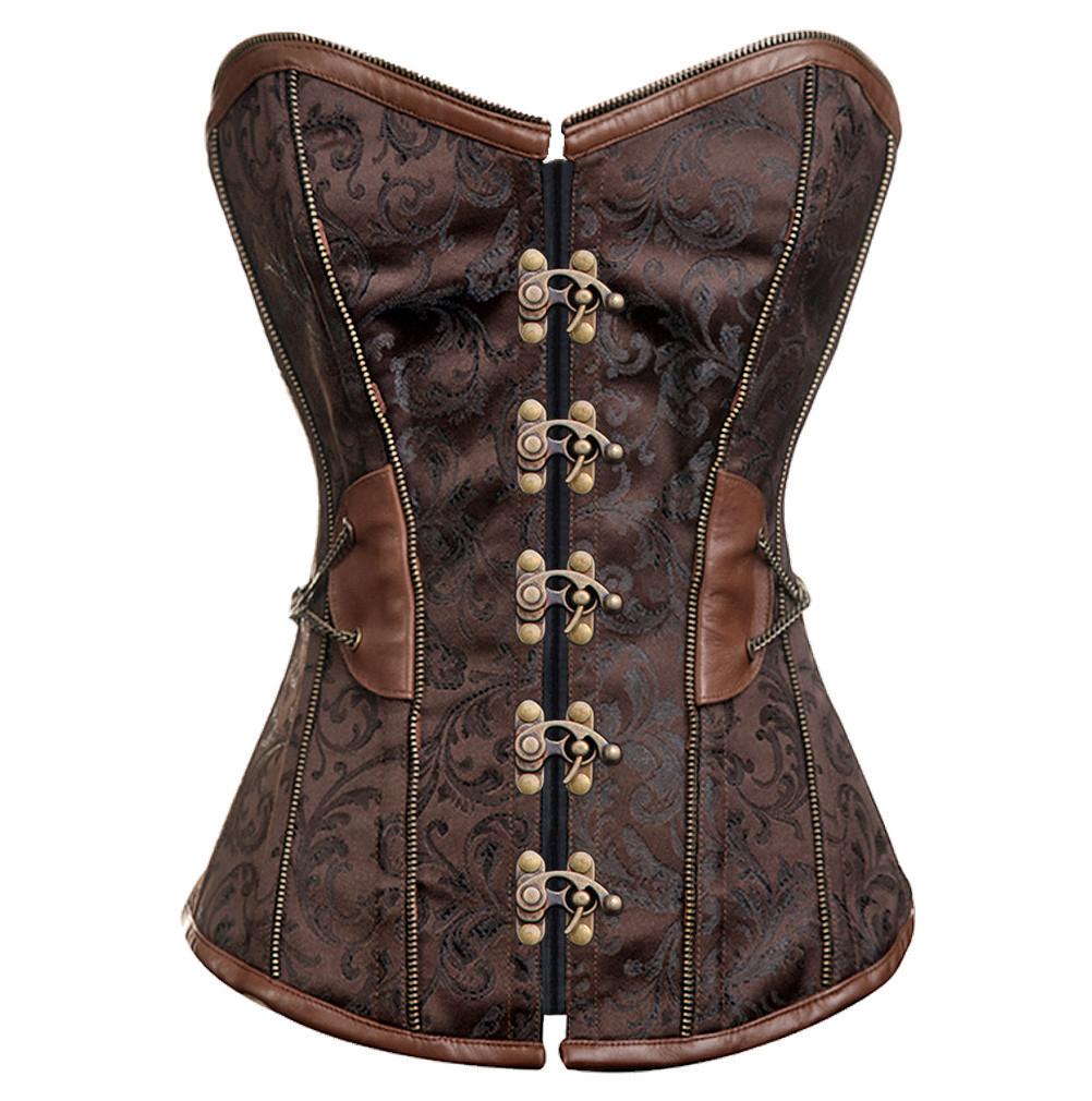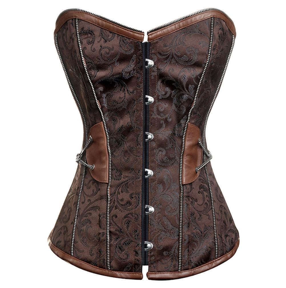 - Brown Brocade steampunk Overbust Corset
