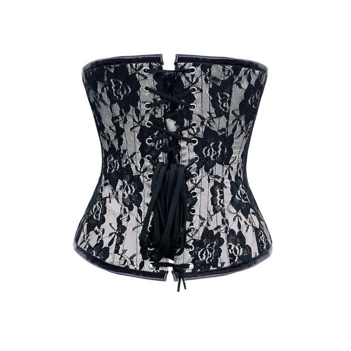 - Ivory Corset With Black Lace Overlay And PVC Front