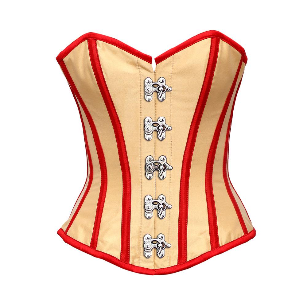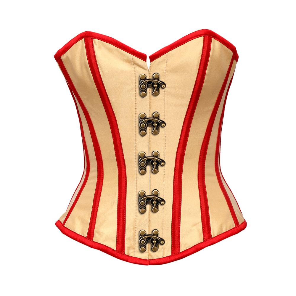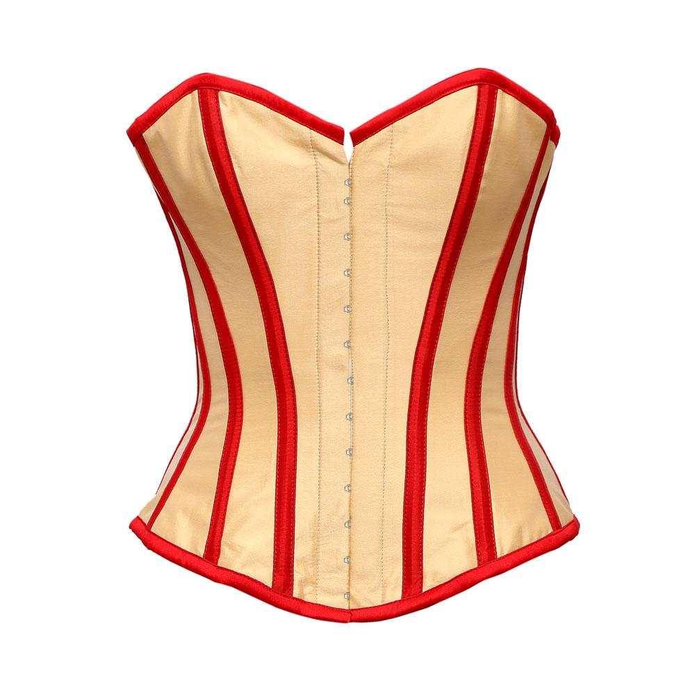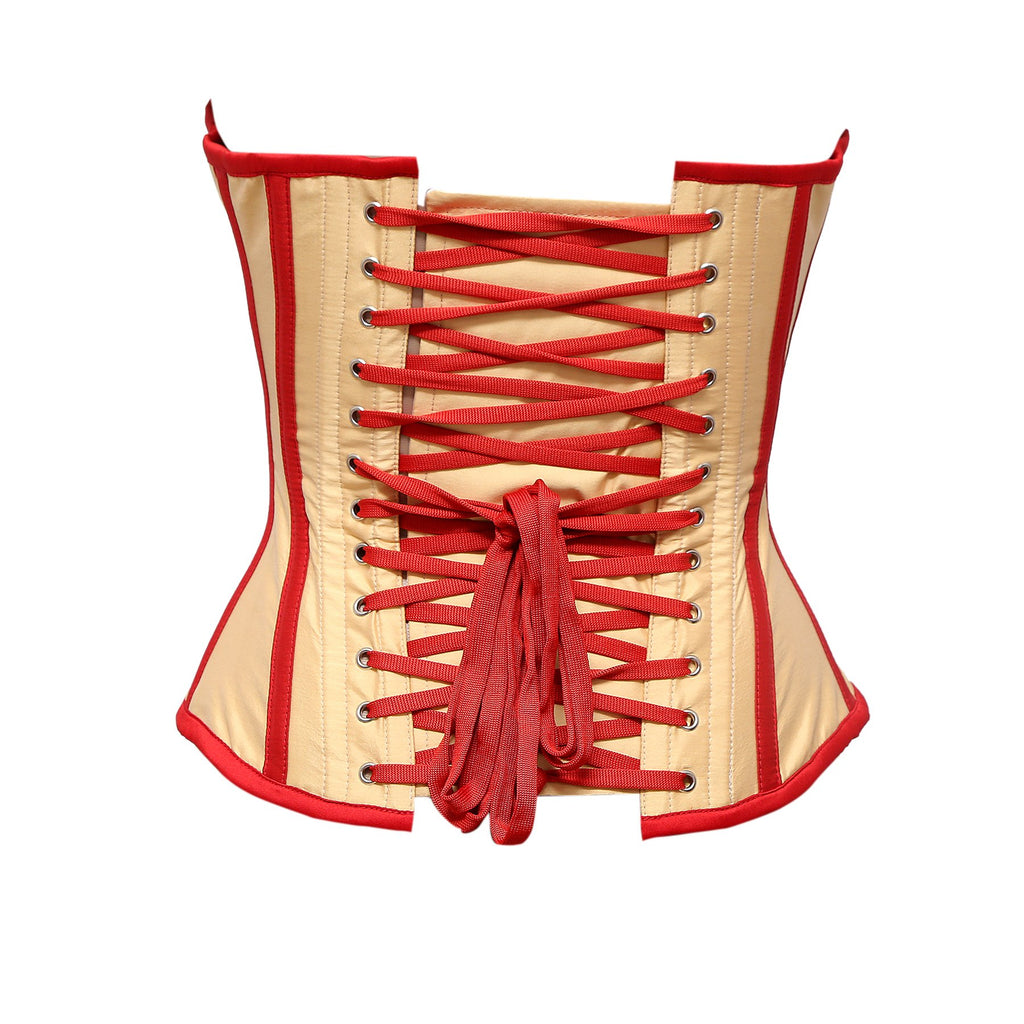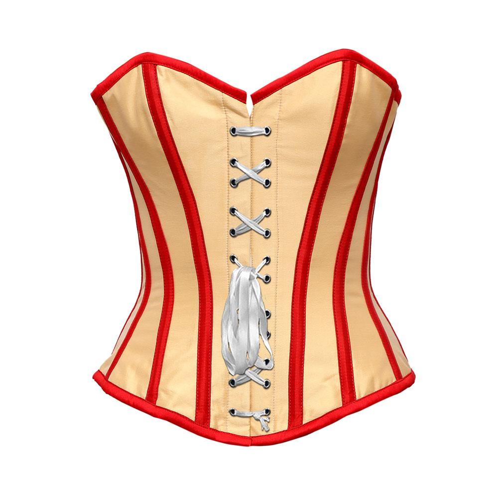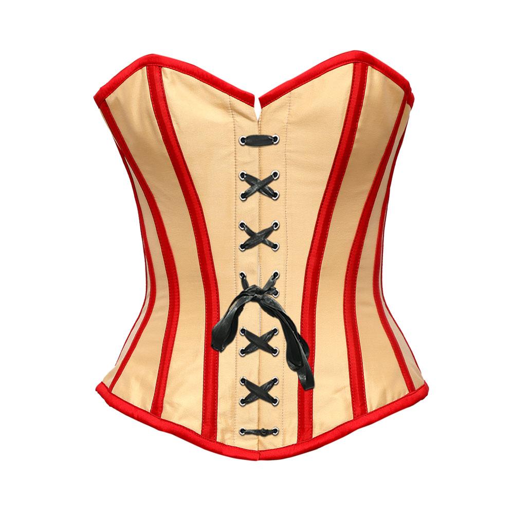 - Fabric: Beige Taffeta With Red Taffeta Trim