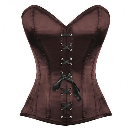 - Authentic Steel Boned Maroon Satin Overbust Corset