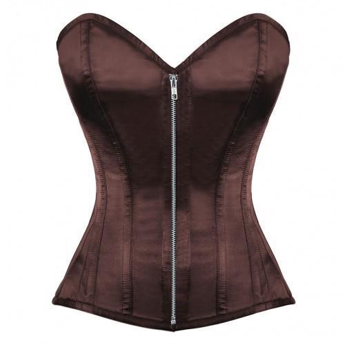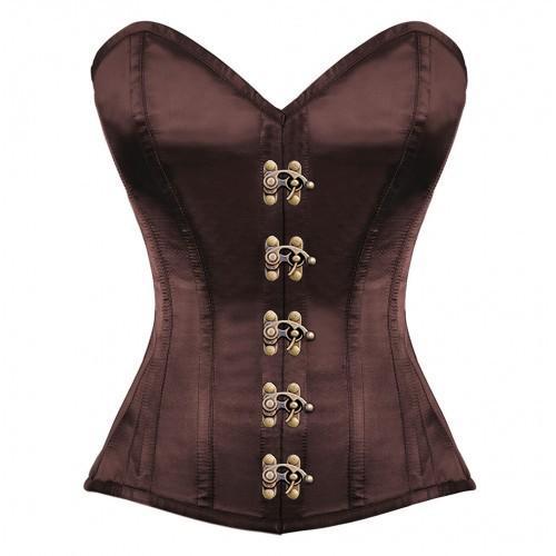 • Authentic Steel Boned Maroon Satin Overbust Corset