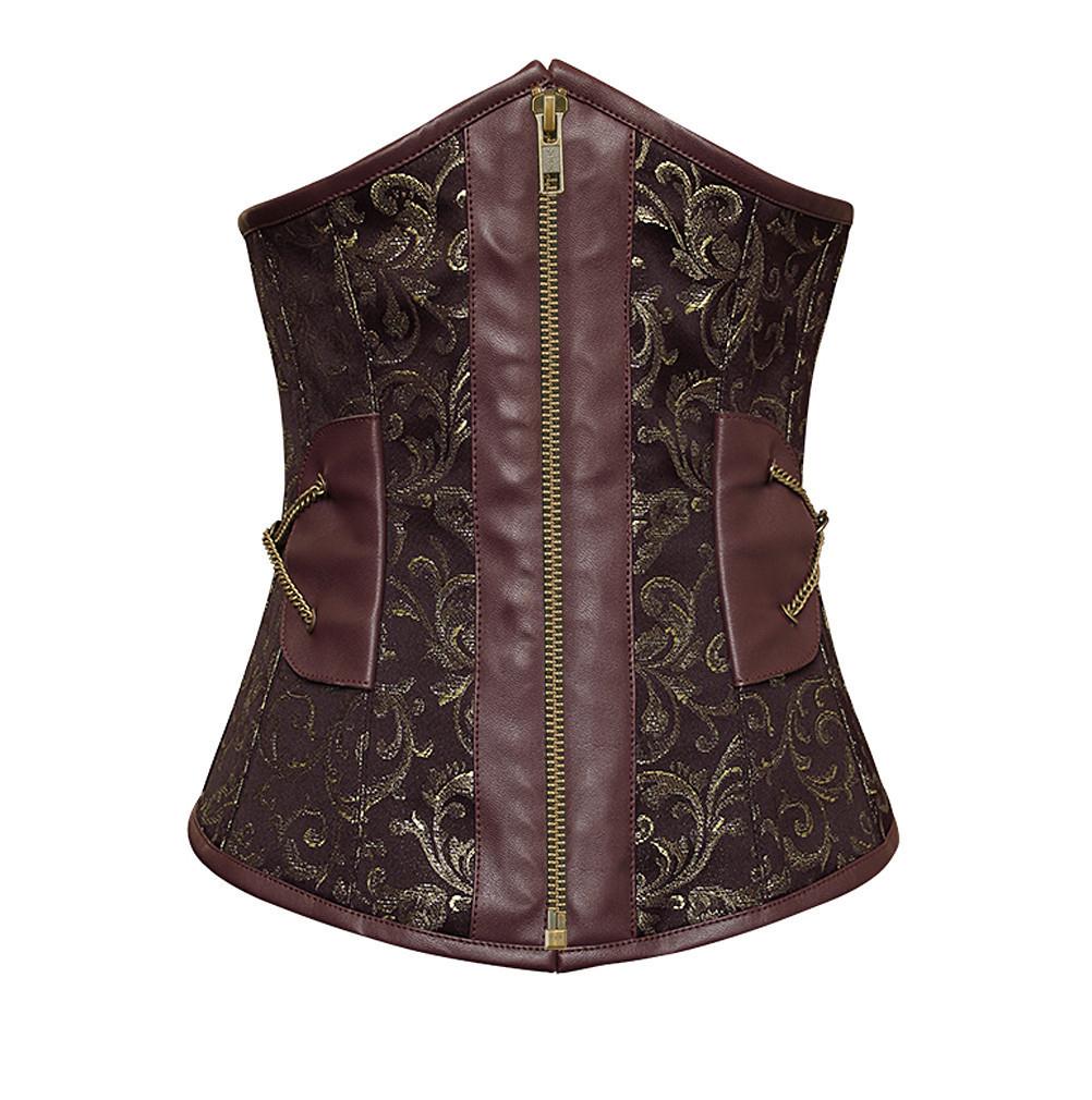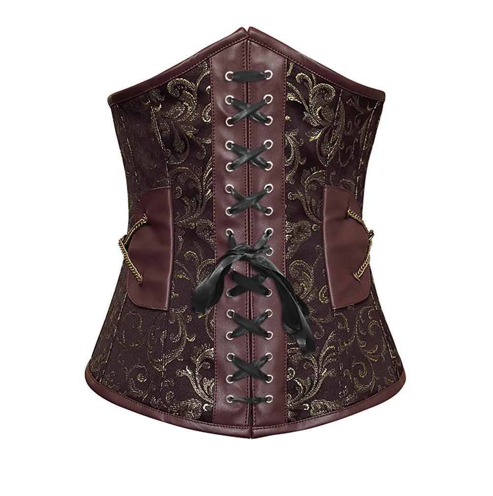 - Brown Brocade Steampunk Underbust Corset