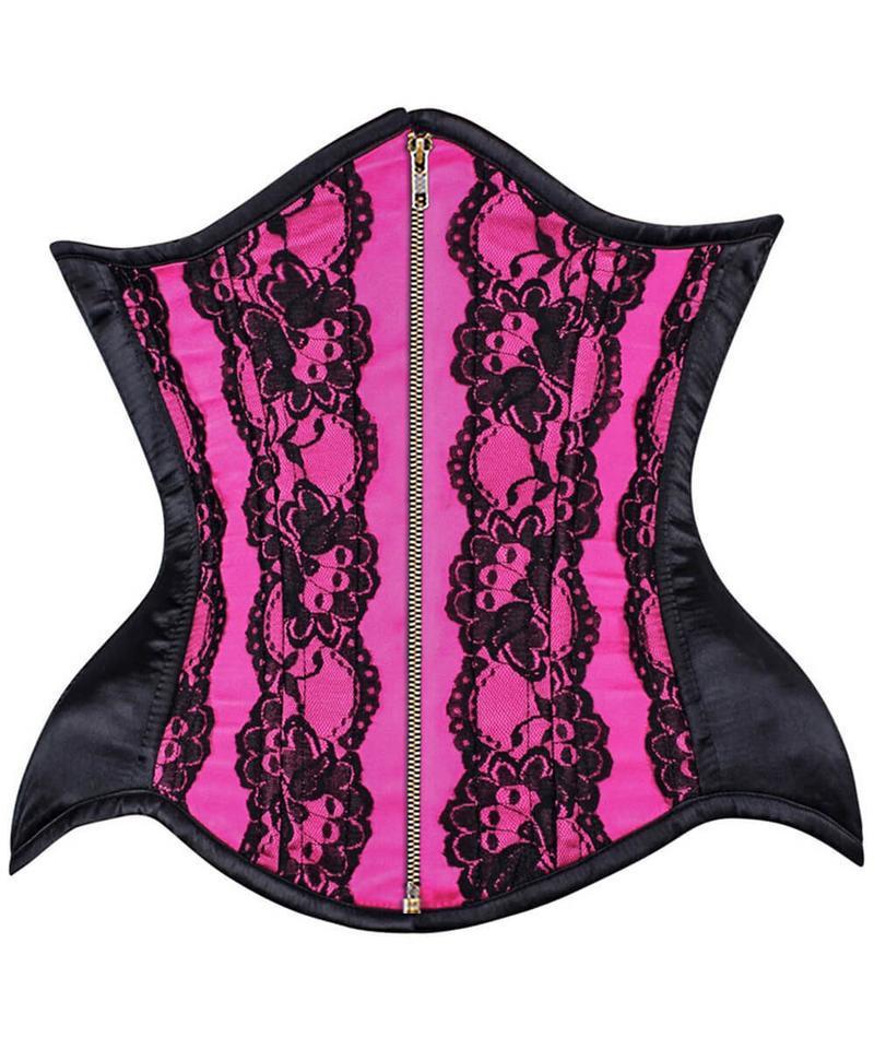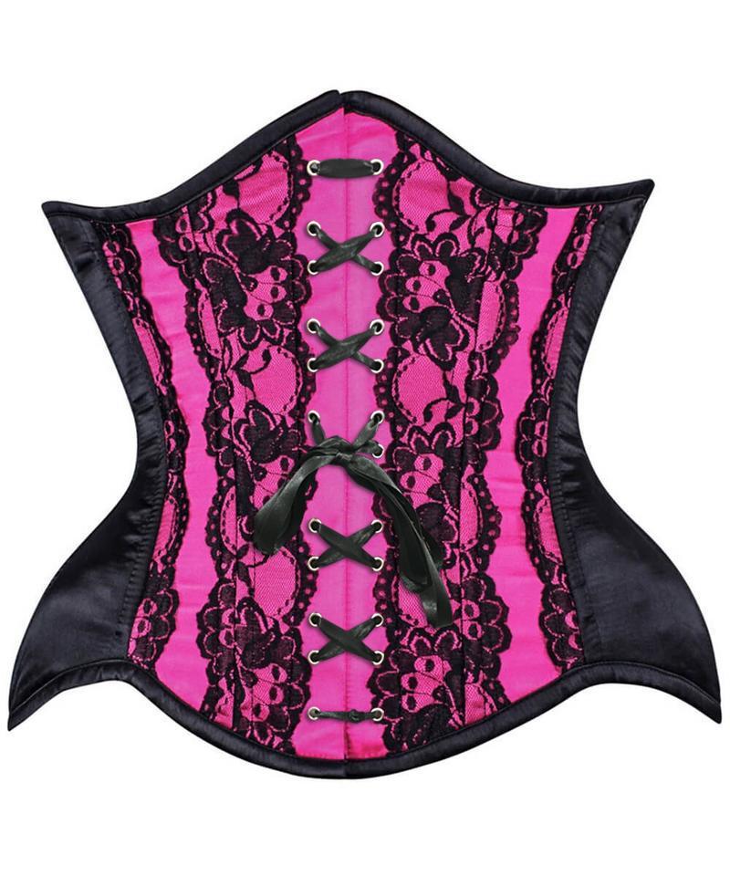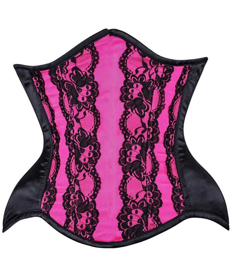 • Spiral Steel Boned Underbust Curvy Corset in Pink Satin