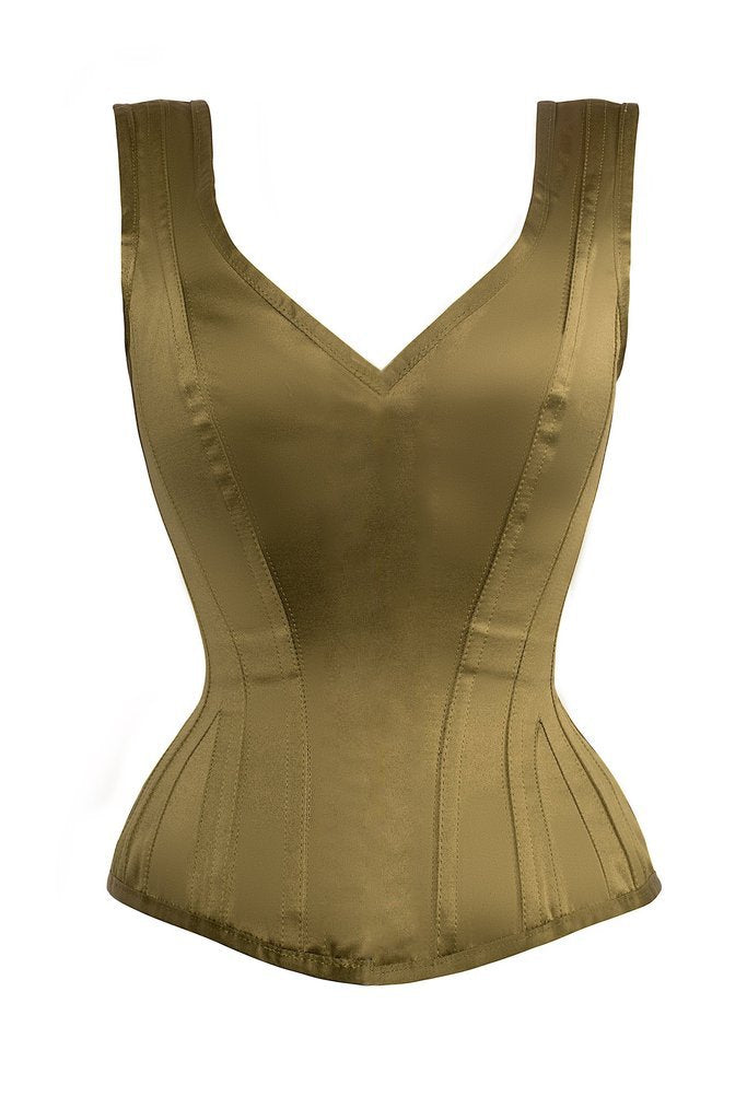 • Authentic Steel Boned Olive Satin Overbust Corset