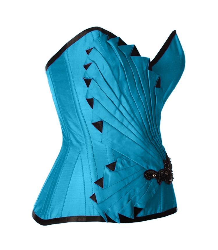 • Turquoise Satin/Taffeta Embroidered Overbust Corset
