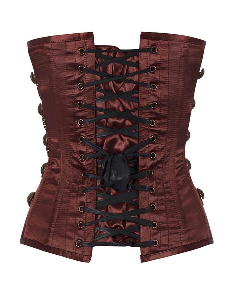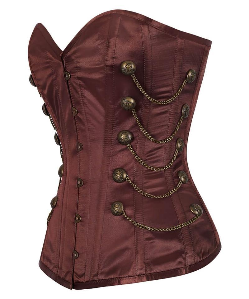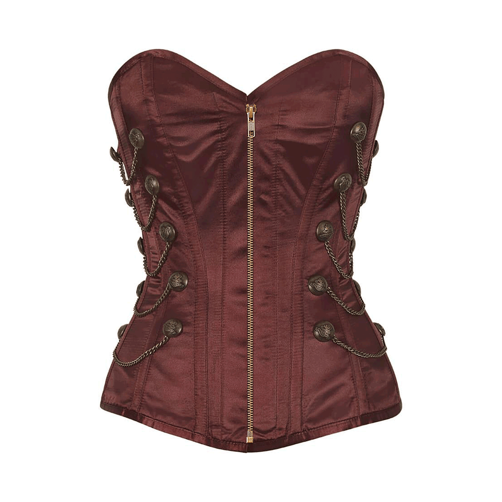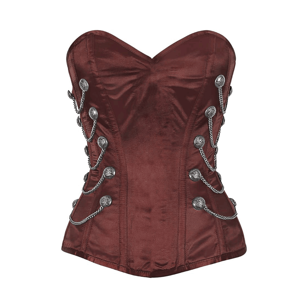 • Spiral Steel Boned Steampunk Satin Overbust Corset with Hanging Chains