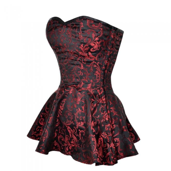 Perditaa Black And Red Brocade Peplum Corset Dress