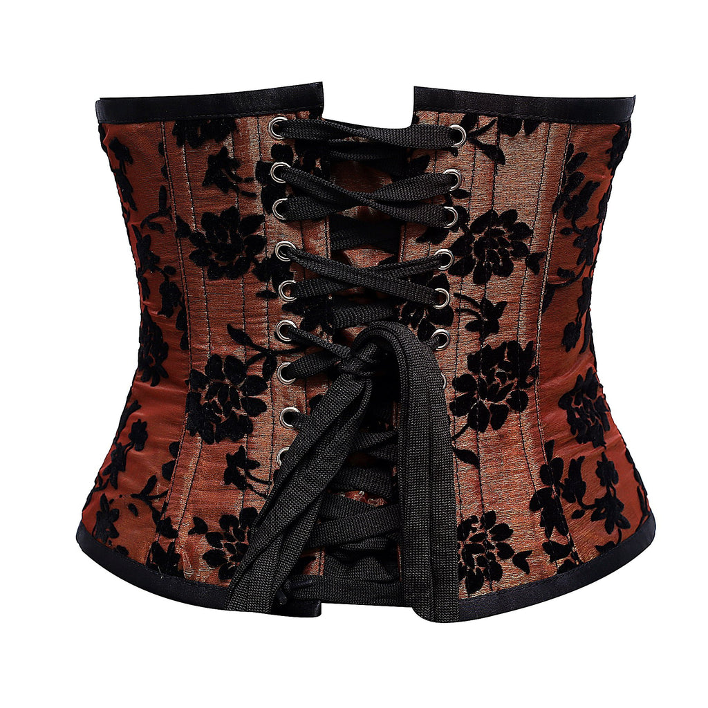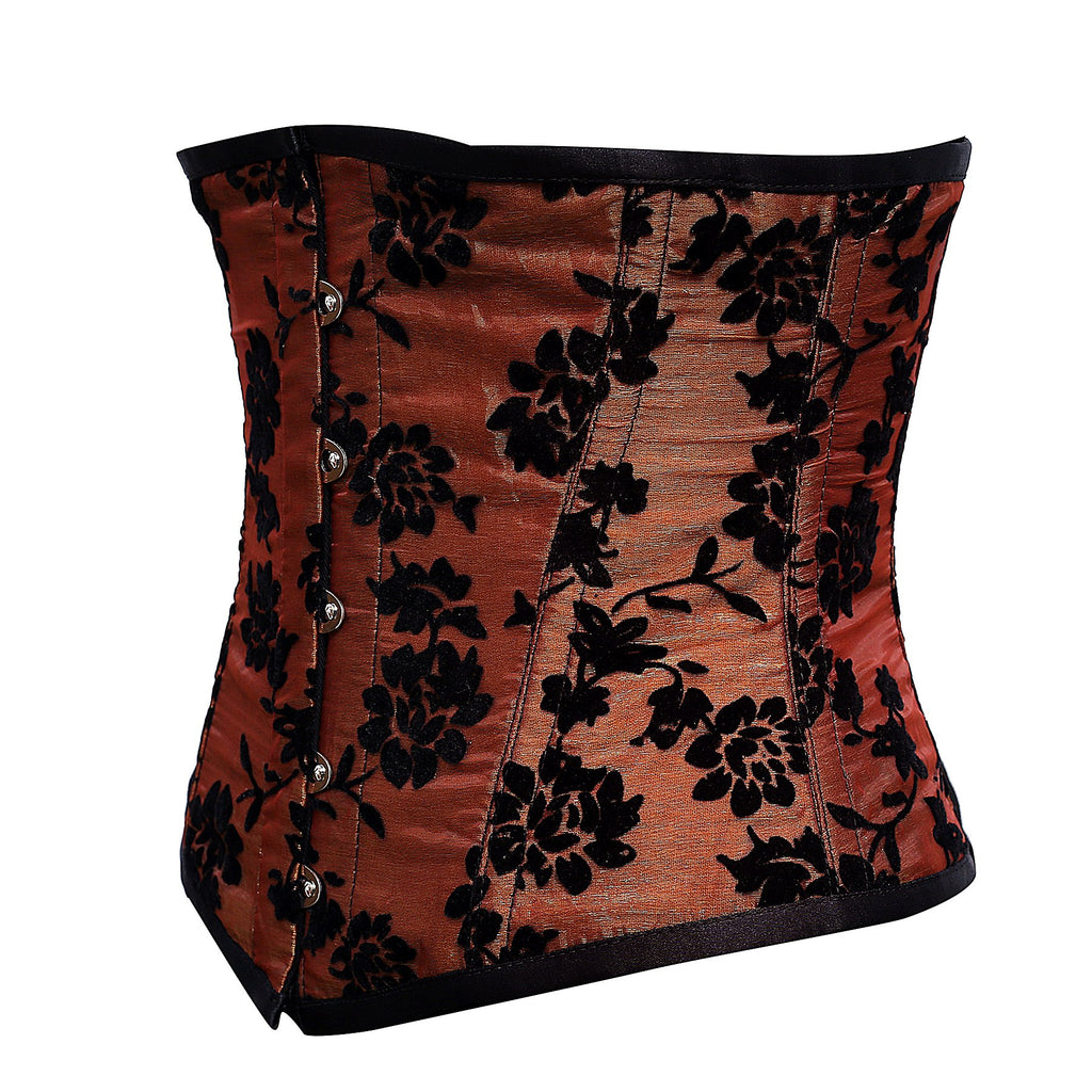 - Steel Bone Burgundy Underbust Corset In Tissue Flocking