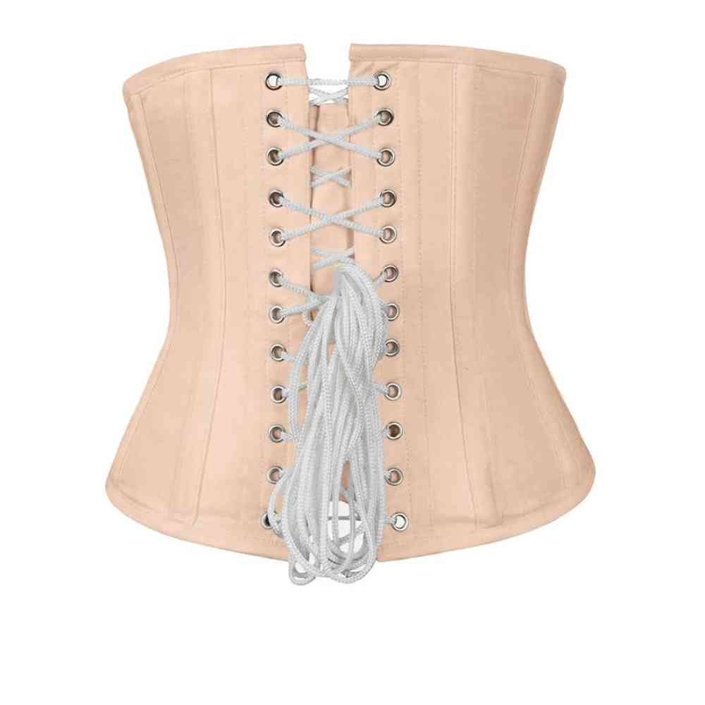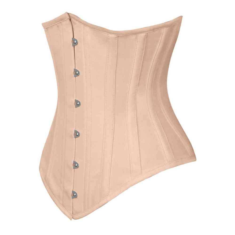 Rebic Steel Boned Long Underbust Beige Taffeta Corset