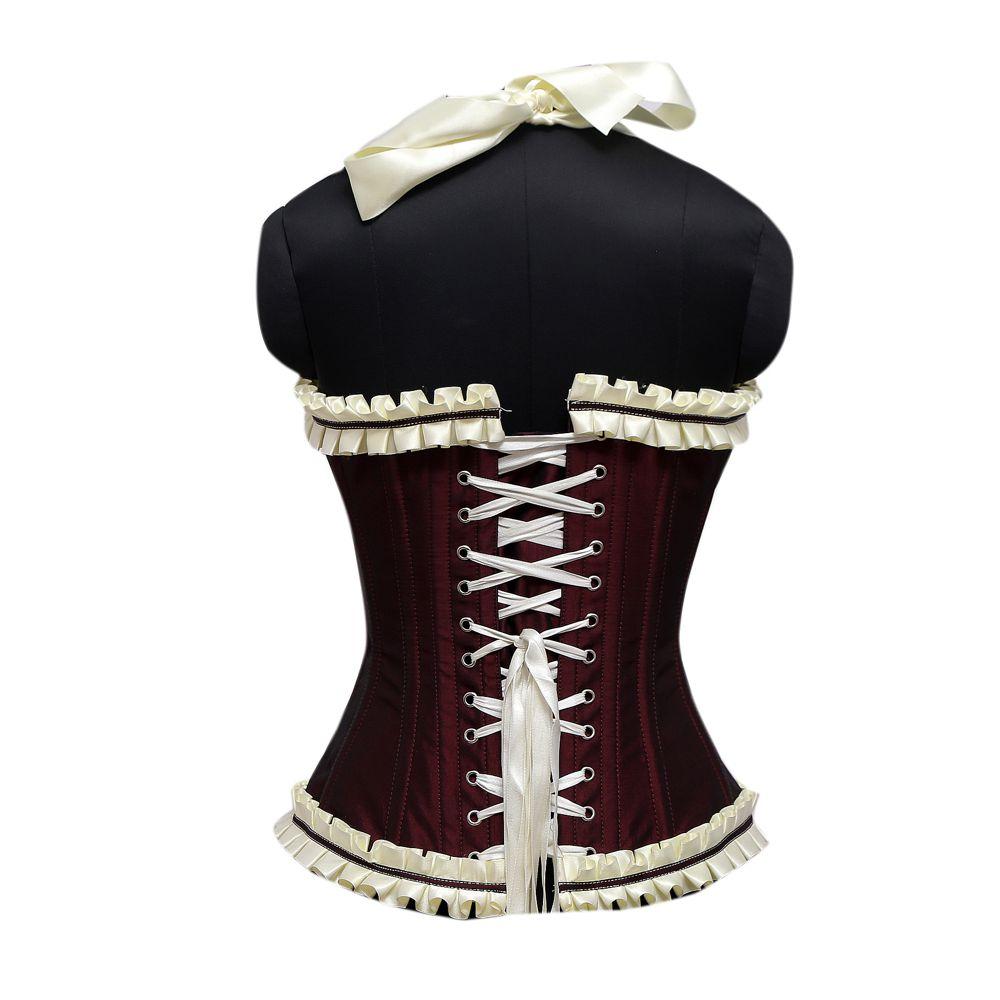 Rodri Burgundy Maroon Cream Embroidery Taffeta Strap Overbust Corset
