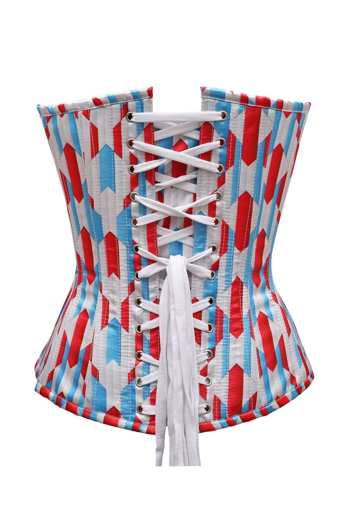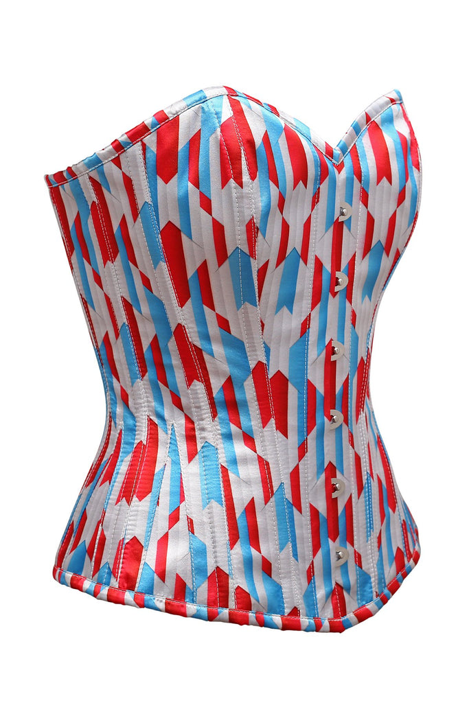 Rylee Red White Blue Zig Zag Print Satin Overbust Corset
