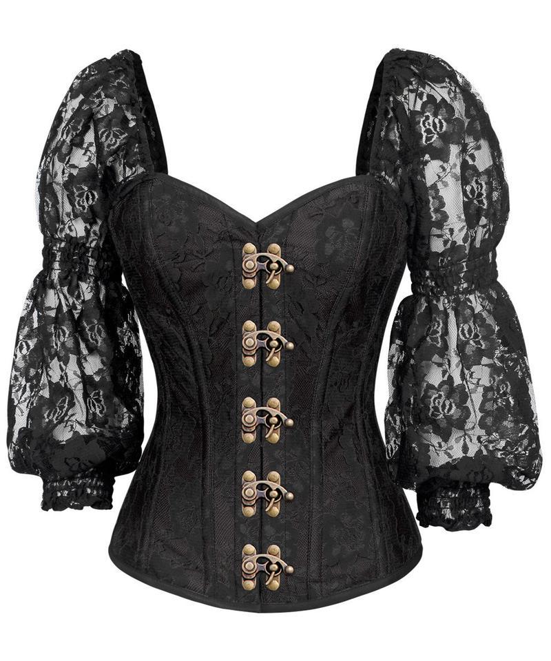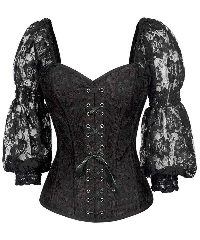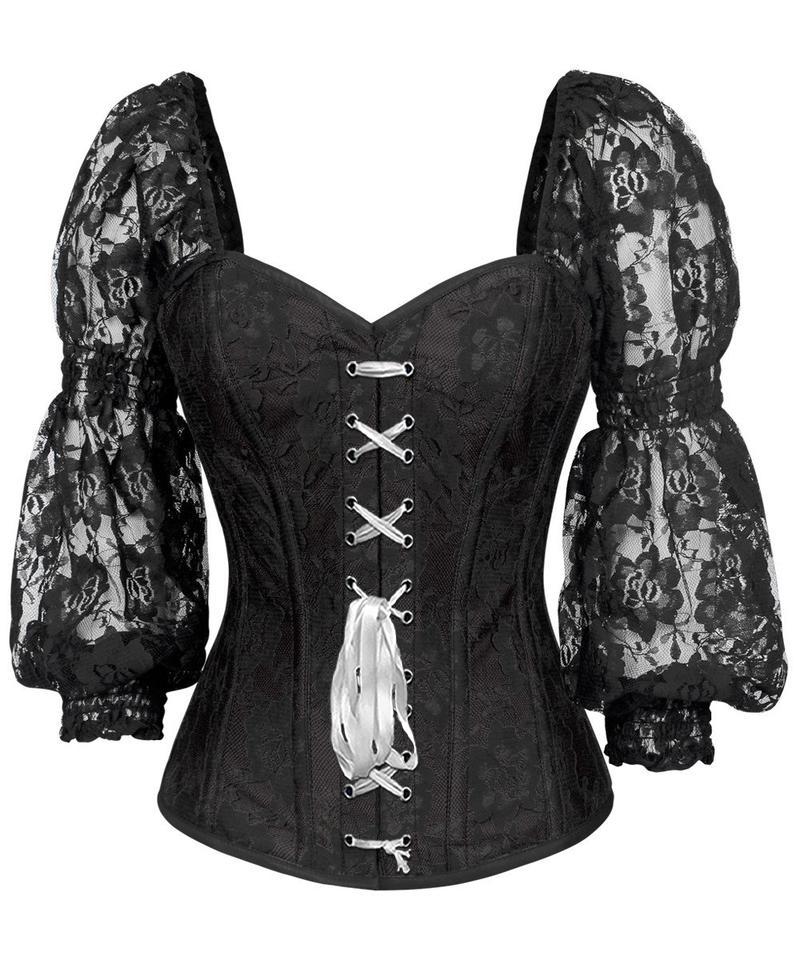 Shayk Lace Overlay Black Overbust Corset with Attached Sleeve