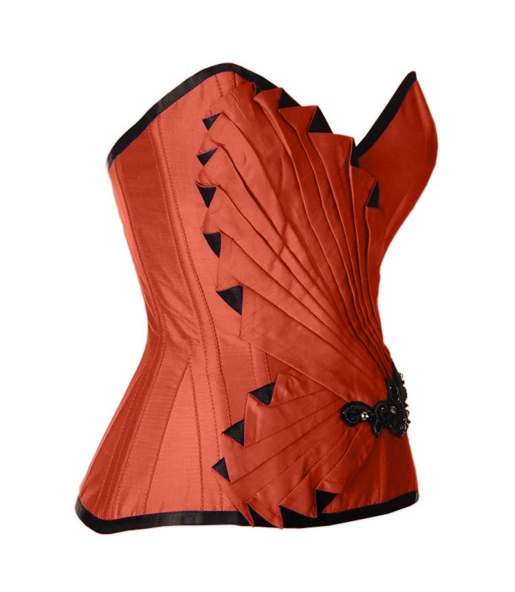 • Dark Orange Satin/Taffeta Embroidered Overbust Corset